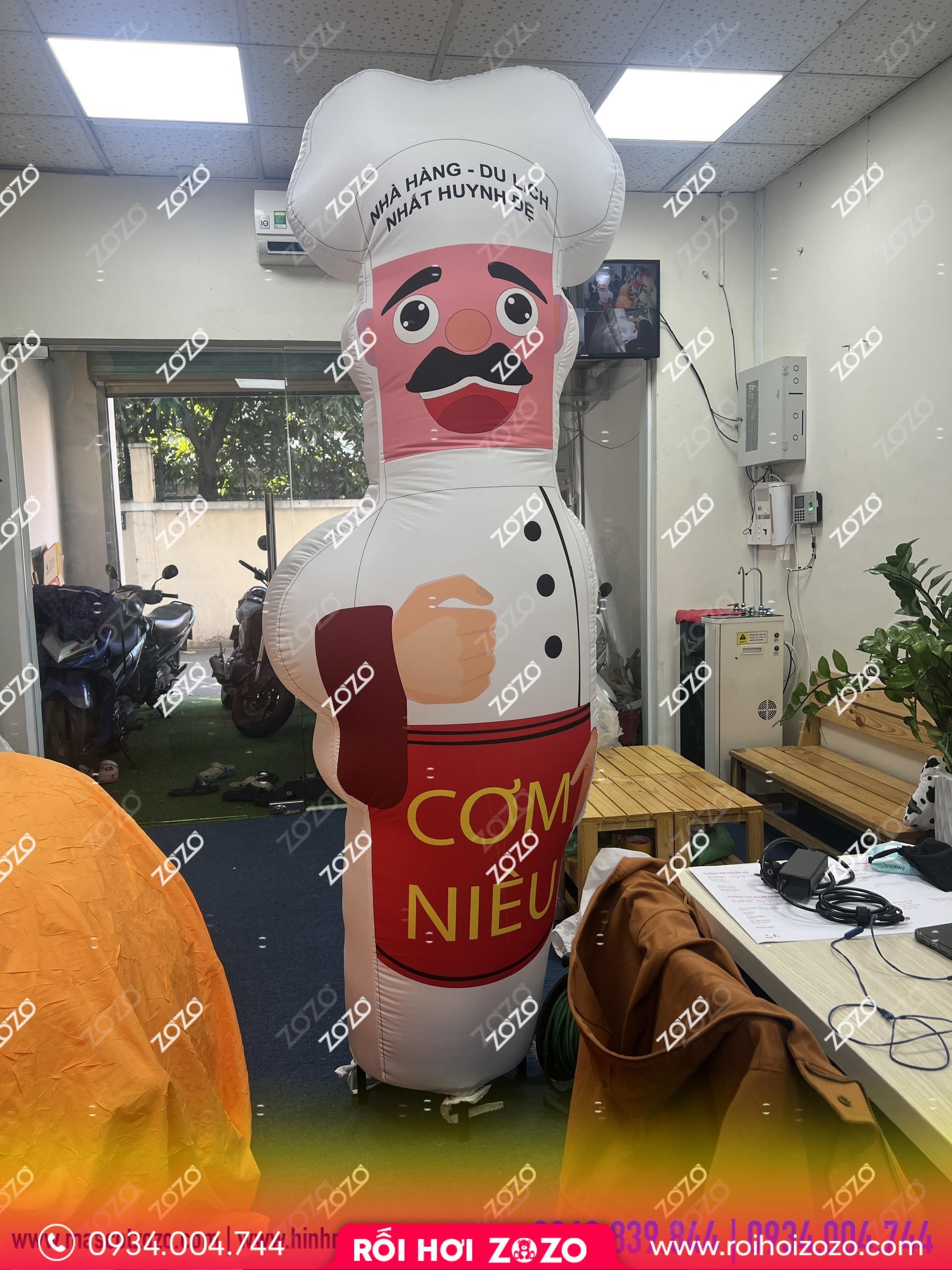 Rối hơi nhà hàng Cơm Niêu đã lấy hình ảnh bếp trưởng vô cùng đáng tin cậy để làm biểu tượng tạo sự chú ý với khách hàng. Với đồng phục đầu bếp sắc màu trắng tinh đặc trưng có thể dễ dàng gây được sự chú ý của khách hàng, khiến mọi người đi qua đều ngước nhìn về phía nhà hàng.