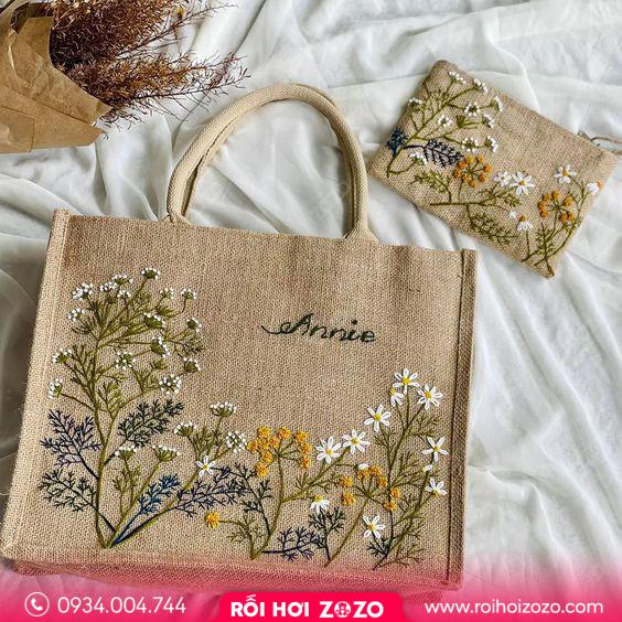 - Chất liệu vải đay: Túi được làm từ vải đay, một loại vải dày và bền, thường được làm từ sợi cotton hoặc sợi linen, giúp túi có độ bền cao và dễ dàng vệ sinh.